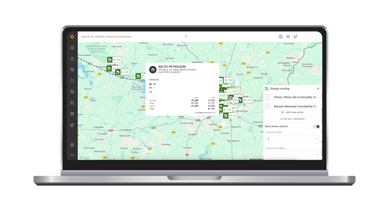 Компанія LINQO інтегрувалася з UNVERO, платформою, створеною для забезпечення прозорості та контролю комерційного ціноутворення на пальне. Завдяки даним у реальному часі по всій Європі, розширеним інструментам контролю над постачальниками та безшовному API-з’єднанню, ця інтеграція допомагає транспортним компаніям зменшувати неефективність та приймати кращі рішення — прямо в LinqoTrack.